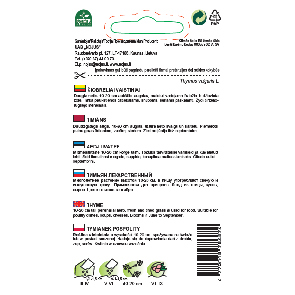 Lot. Thymus vulgaris L. EK noteikumi un standarti Kategorija ST |