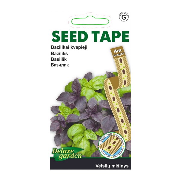 Aromātiskie baziliki (maisījums) Viengadīgs lakstaugs. Lapas vāc līdz ziedēšanai, jo tad tās ir visaromātiskākās. Lieto svaigas, sasaldētas vai ēnā kaltētas. Piemērotas audzēšanai dārzā, uz balkona vai uz palodzes. Sēklu lentes ar mēslojumu (15-9-12+2MgO+TE) priekšrocības: viegli sēt, sēklas dīgst vienmērīgi. Lentes sastāvā esošais mēslojums nodrošina labāku dēstu kvalitāti. Pirms lentes ieklāšanas augsni ieteicams bagātīgi salaistīt. Ieklāto sēklu lenti pārklāt ar augsni un vēlreiz salaistīt. |