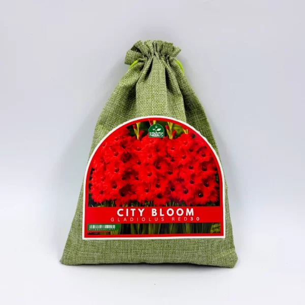 Miesto žiedai raudonas kardelių svogūnėlių rinkinys 30 sv.