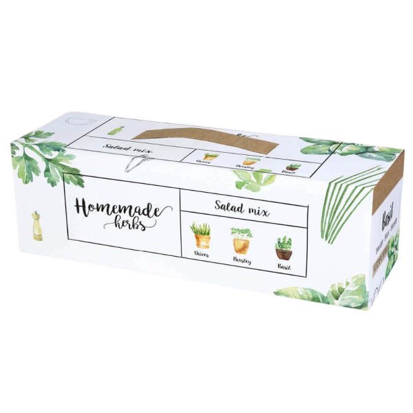 Šis žolelių auginimo rinkinys sukurtas tiems, kurie nori turėti šviežių, aromatingų žolelių salotoms ir kitiems patiekalams tiesiog savo namuose. Rinkinyje yra viskas, ko reikia auginimui: dirvos diskas, trijų populiarių žolelių sėklos ir patogi dėžutė, tinkama naudoti kaip auginimo indas. Tereikia sudrėkinti dirvą, pasėti sėklas ir pastatyti dėžutę šviesioje vietoje — ir netrukus džiaugsitės šviežiomis žolelėmis tiesiai nuo palangės.